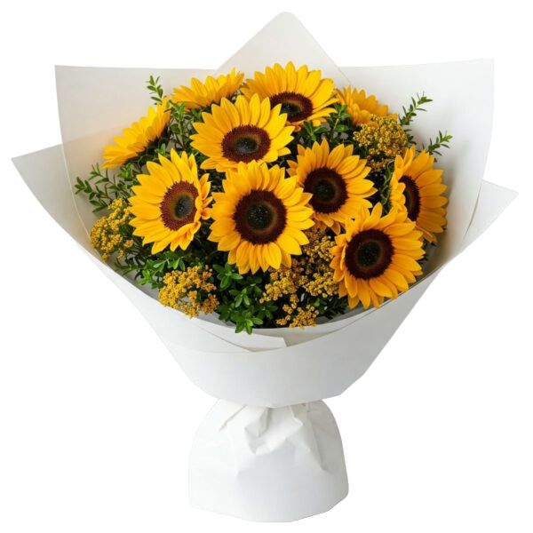 זר כפרי משגע עם 11 חמניות עשירות ויפות, זר מלבב ושמשי שיאיר כל חדר ,עם תוספת של ענפי סלידגו יפים וירק להעשרתו. זר שיחמם לכם את הלב.